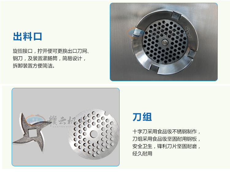 這款32B型強力絞肉機采用不銹鋼材質(zhì)加工精致而成,改傳統(tǒng)的鑄鐵絞肉機頭為不銹鋼絞肉機頭,使之接觸食品部位均為不銹鋼材質(zhì),不生銹,達到食品安全衛(wèi)生要求。