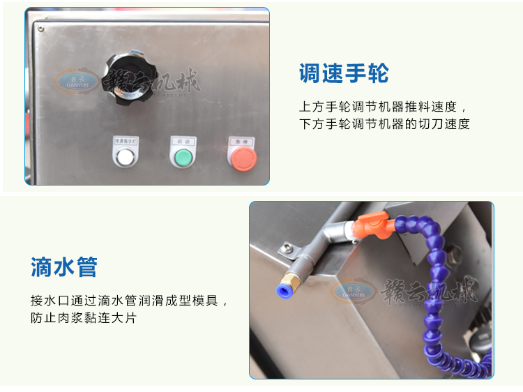 雙調(diào)速肉丸成型機是一款自動旋轉(zhuǎn)剪切肉丸、魚丸、素丸等實心丸子成型設備,該機根據(jù)國內(nèi)外多數(shù)肉丸廠家所生產(chǎn)的漿體(嫩、滑、稀、稠)情況而定制的丸子成型配置。成型速度可調(diào)90-500粒每分鐘,成型效果圓滑、輪廓漂亮、規(guī)格統(tǒng)一,是生產(chǎn)各種魚丸、素丸、豬肉丸、嫩滑類型丸子的成型設備。它具有成型效率高、性能穩(wěn)定,先后被國內(nèi)外知名企業(yè)投入生產(chǎn)。