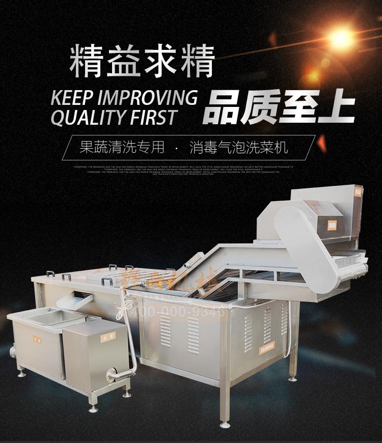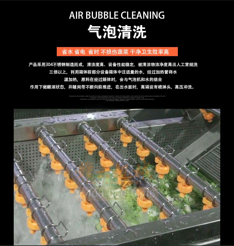 蔬菜清洗機有效的殺滅有害細菌,分解殘留農(nóng)藥;通過清洗水循環(huán)利用,可節(jié)約80%的清洗用水用于清洗蘑菇、芹菜、菠菜、白菜等莖葉類蔬菜以及蘋果、西紅柿、辣椒、茄子、黃瓜、草莓等果蔬的主要設備,廣泛適用于蔬菜加工行業(yè)及廠礦、部隊、醫(yī)院、各大專院校等單位的食堂。