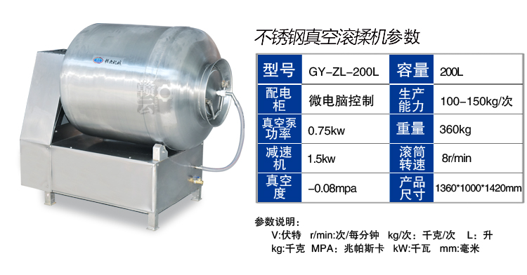 主頁-> 肉制品前處理->斬拌滾揉設備->200升真空滾揉機
