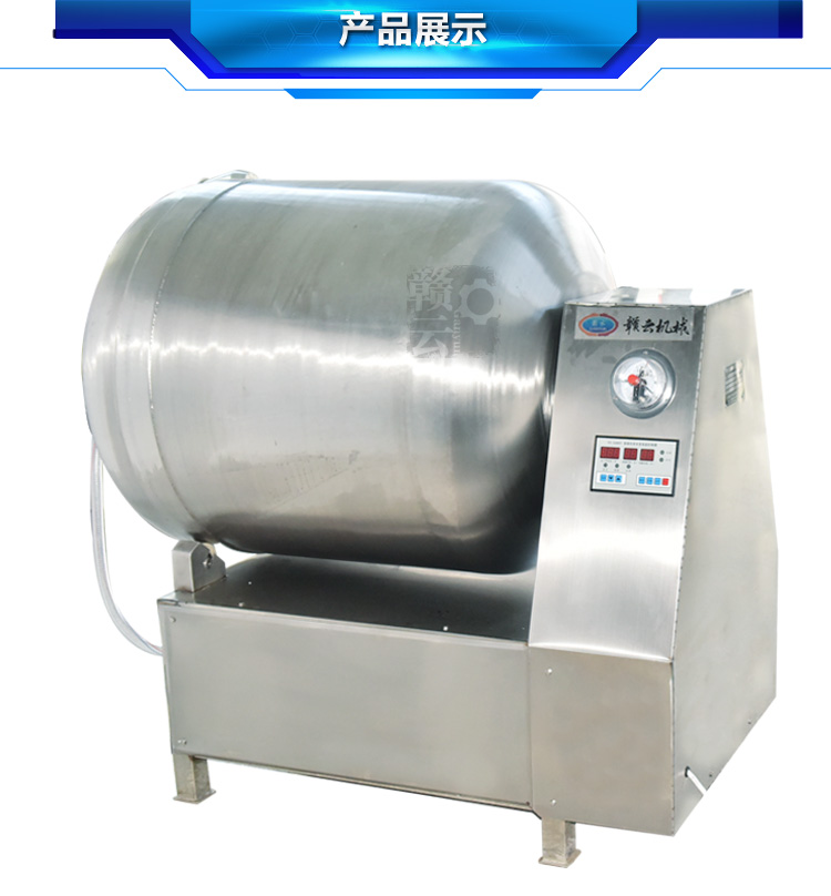 滾揉機除了能加速腌效果外,采用滾揉技術達到肉質(zhì)嫩化效果的也是西式火腿加工的重要工序,然肉質(zhì)在常規(guī)的滾揉機械加工過程中常常會因為摩擦滾揉升溫而容易導致肉質(zhì)變質(zhì),因此滾揉的時間需要控制的十分好。贛云真空滾揉機是為了彌補常規(guī)型滾揉機的缺點而進行科學的設計,真空狀態(tài)下可以很好的保證肉質(zhì)的質(zhì)量,在經(jīng)過微電腦控制滾揉時間,使得整個滾揉工藝變得簡單化和可快速復制性。