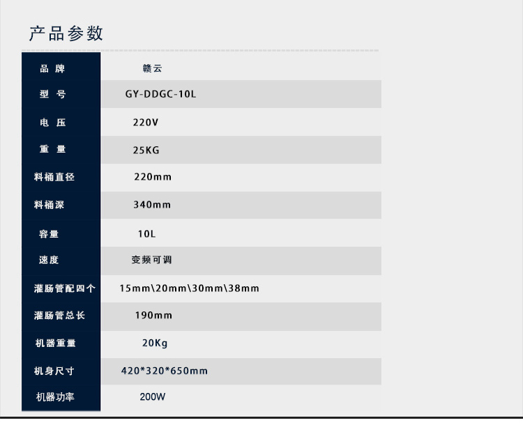 肉制品前處理->專(zhuān)用灌腸設(shè)備->電動(dòng)灌腸機(jī)10L | |||||||