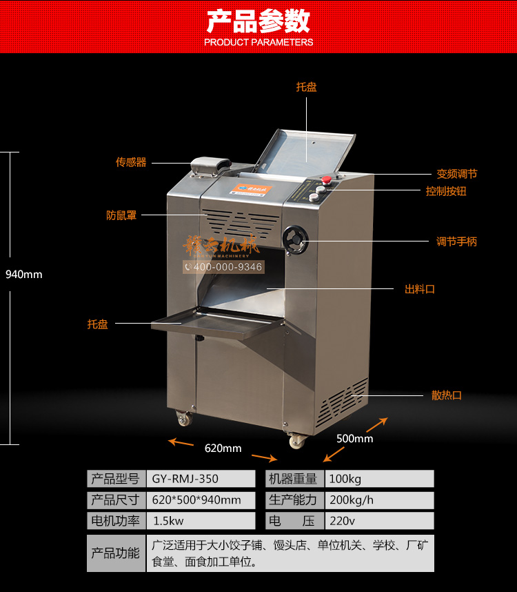 米面加工機(jī)械->壓面機(jī)->350型揉面機(jī) | |||||||