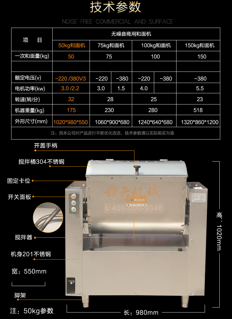 米面加工機(jī)械->和面機(jī)->50KG全鋼和面機(jī) | |||||||