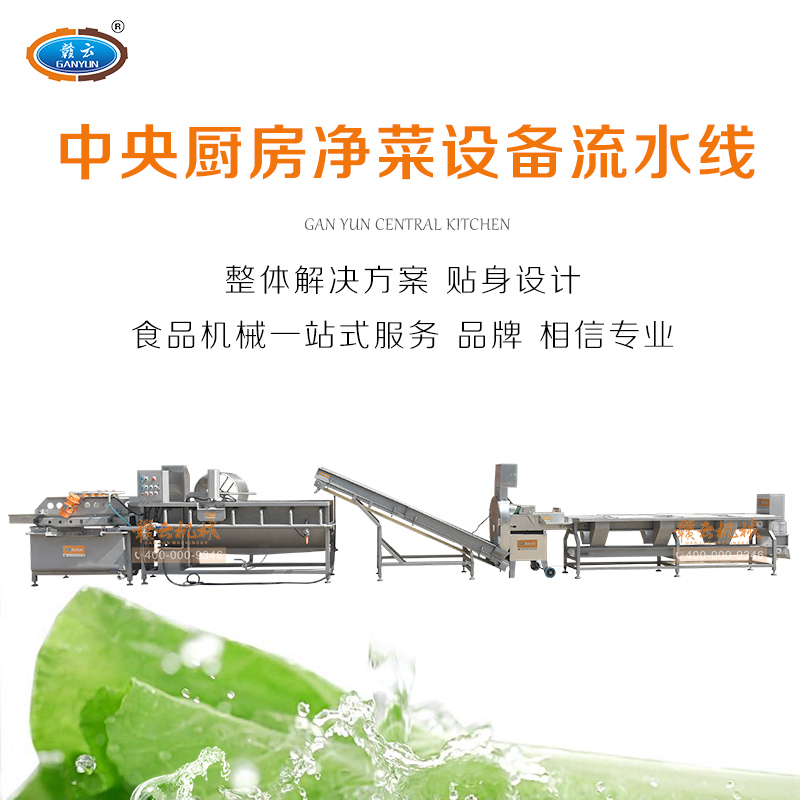 中央廚房凈菜設備流水線_食堂凈菜加工流水線_食堂切配成套設備_贛云掌握中央廚房凈菜設備核心技術(shù),本套設備由分選輸送設備、數(shù)字多元化切配設備、提升設備、渦流臭氧清洗去農(nóng)藥殘留設備、高頻振動機組合而成,可根據(jù)客戶需求定制中大型流水線。