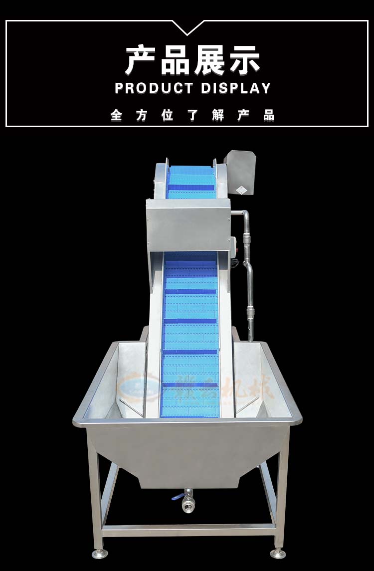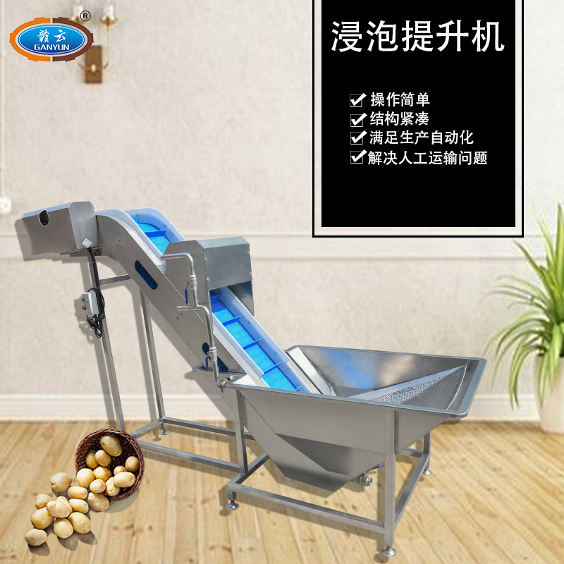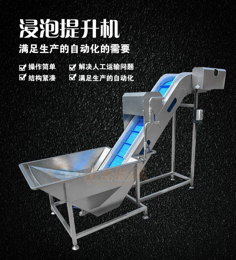 本機主要起提升和輸送的作用,浸泡清洗機是由水箱和提升機組合而成的機械,物料先倒入水槽后浸泡,在由提升機進行提升給下一道工序。解決人工入料困難的問題;在流水生產線中,該設備通常和其他入料口要求高的設備搭配使用,滿足生產的自動化的需要。該機具有操作簡便、結構緊湊、造型美觀、維修方便等優(yōu)點。