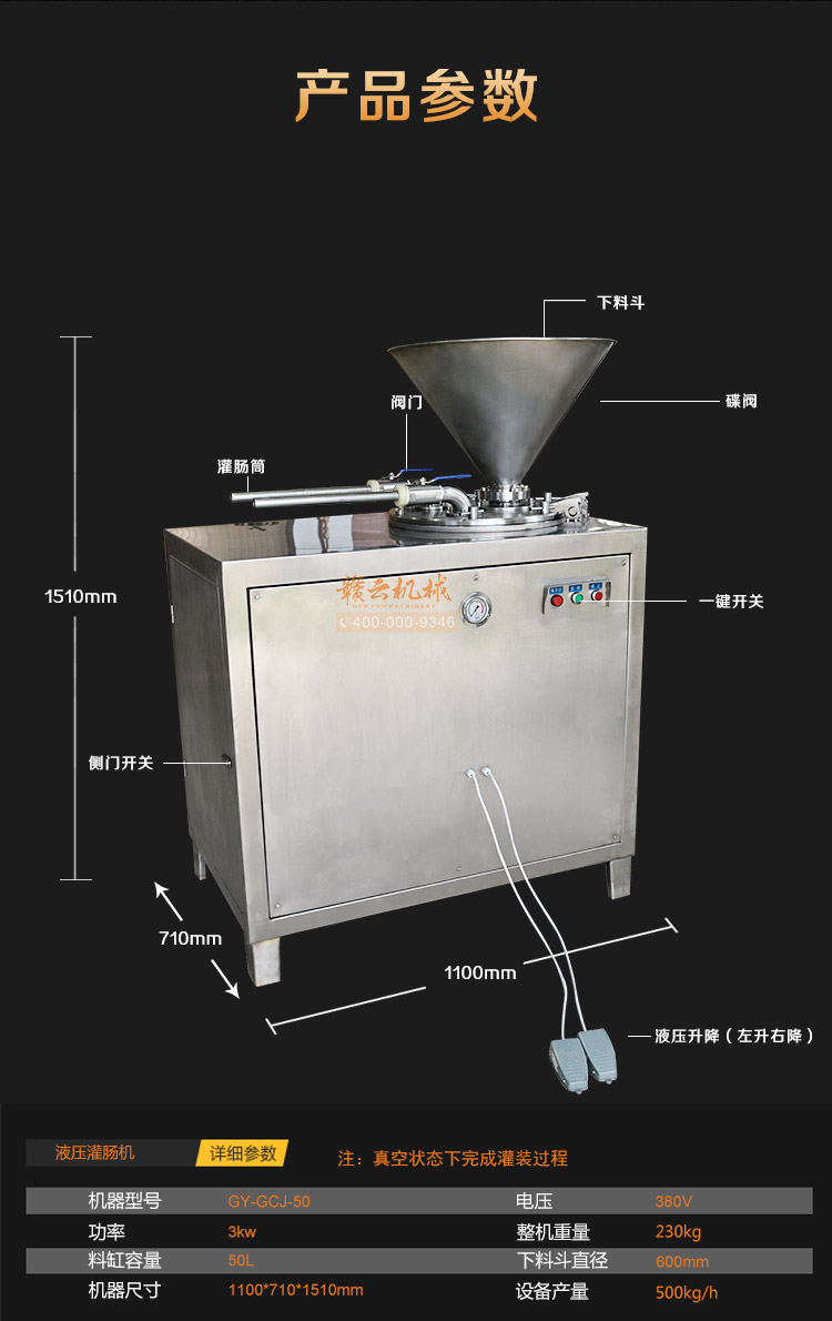肉制品前處理->專用灌腸設(shè)備->50升液壓灌腸機(jī) | |||||||