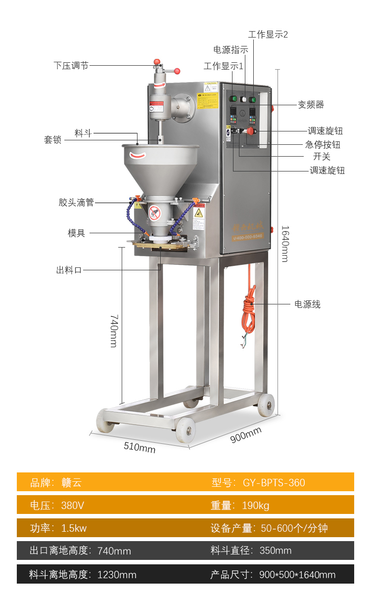 主頁-> 肉丸成型機械->實心肉丸機->新款變頻雙調速肉丸成型機