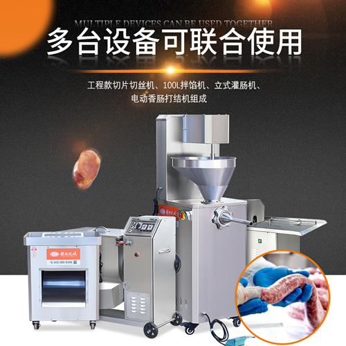 贛云牌立式全自動灌腸機,根據(jù)多次的機器實地使用和存在不足之處反復(fù)改造后的全新配置升級,采用不銹鋼機身,機頭使用可拆卸,方便機器清洗,速度平衡穩(wěn)定,不銹鋼機身,腳踏控制灌腸,大功率電機,無論是四川香腸、湖南臘腸、脆皮腸、山東香腸、廣式臘腸還是河南臘腸都適用,一機多用,設(shè)備滿足多重風(fēng)味香腸制作,新升級的機器加寬加大入料口,讓您進(jìn)料順暢不卡料,灌腸機可以與多臺設(shè)備聯(lián)合使用,可與切片切絲機,拌餡機,灌腸機,香腸打結(jié)機組成,提高您的生產(chǎn)效率。