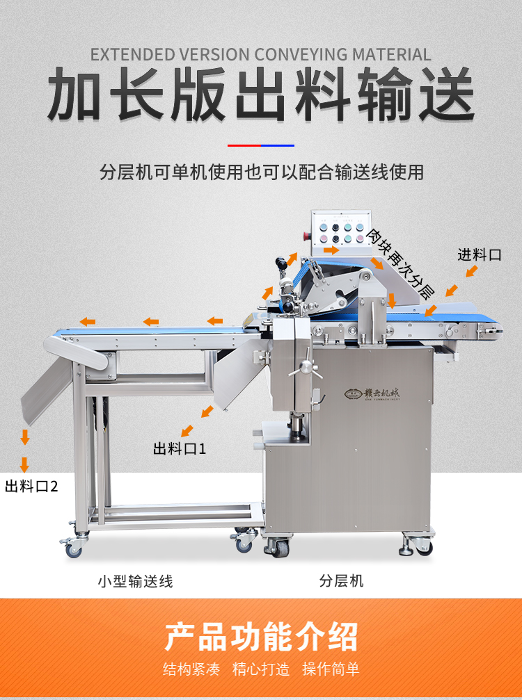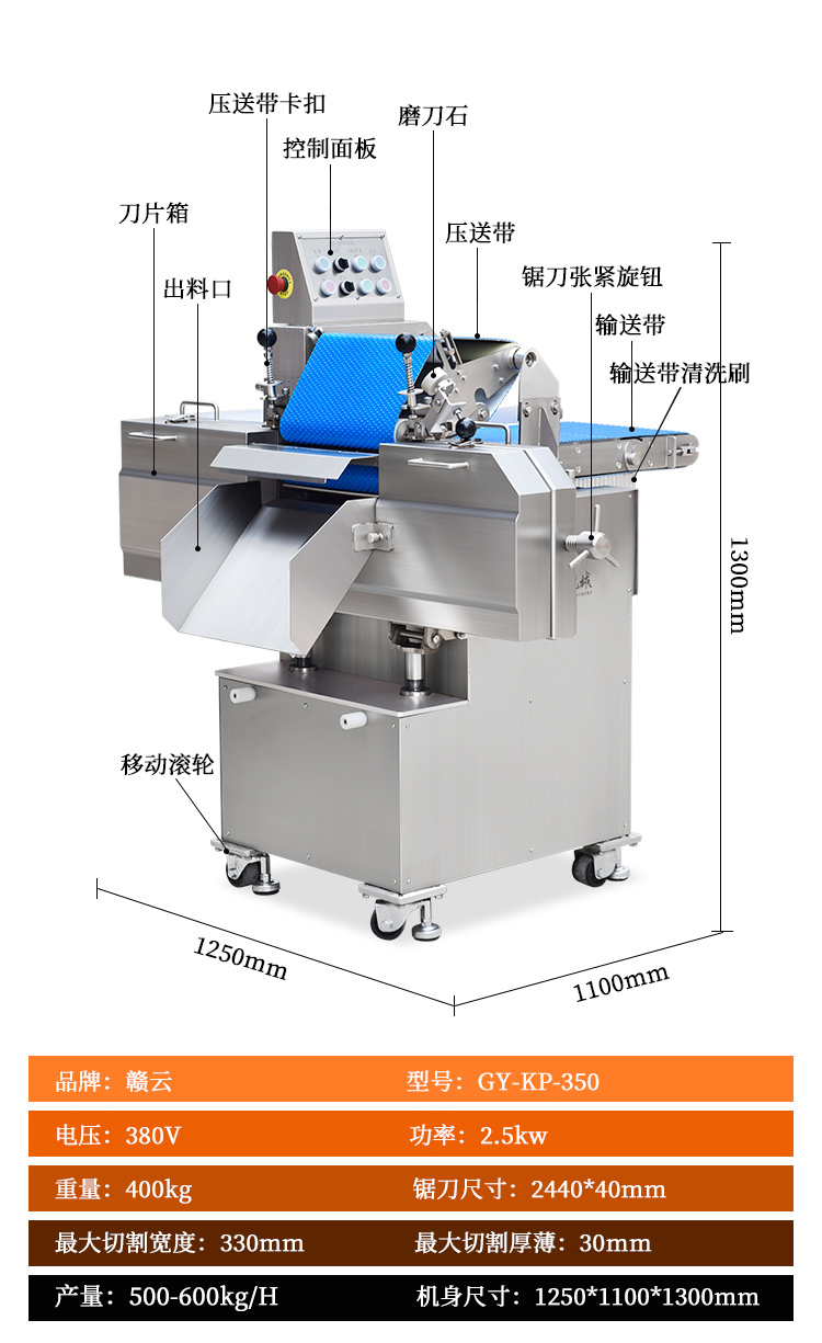 贛云350鮮肉開片分層機(jī),全自動(dòng)分層機(jī),適用于切割鮮肉、雞胸肉、里脊肉、瘦肉等肉制品加工切片的設(shè)備,切肉片機(jī)器使用不銹鋼材質(zhì),環(huán)形切刀,厚薄可調(diào),切肉機(jī)分層機(jī)增加了小型輸送線,多功能切肉片機(jī)器適用于肉制品加工廠,中央廚房設(shè)備中。