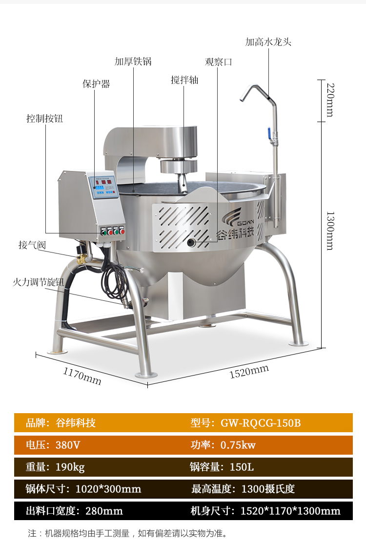 中央廚房設(shè)備->熱調(diào)理區(qū)設(shè)備->150升燃?xì)獬床藱C(jī)(帶攪拌) | |||||||