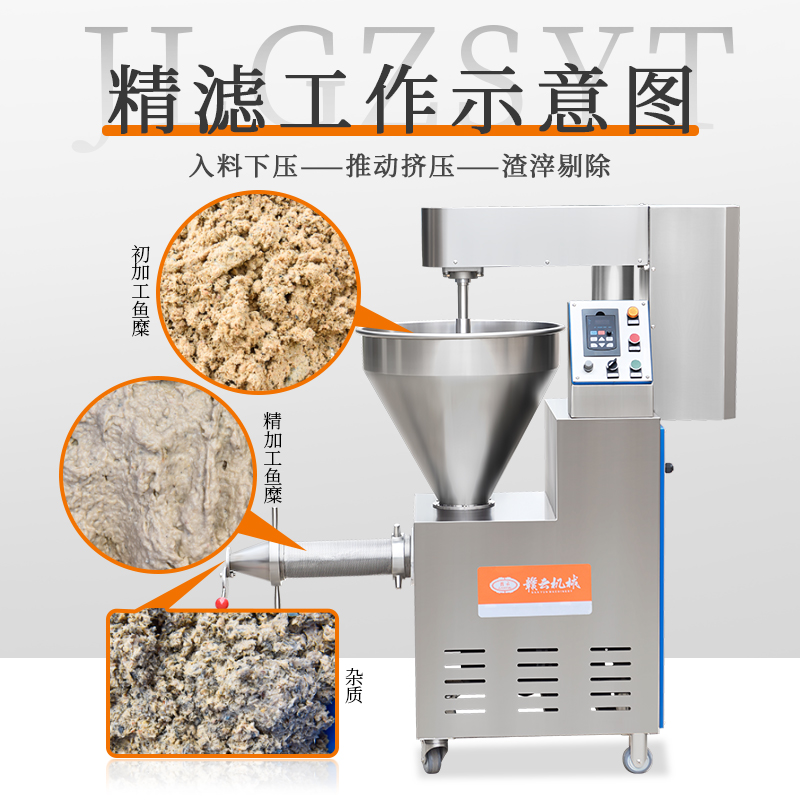 實(shí)拍魚糜精濾機(jī)精濾鮮魚肉效果
