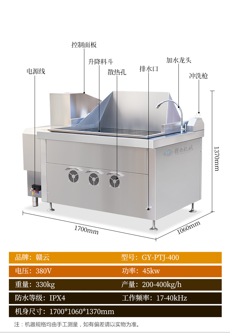 中央廚房設備->熱調(diào)理區(qū)設備->400L方形自動漂燙機/焯水/油炸機 | |||||||