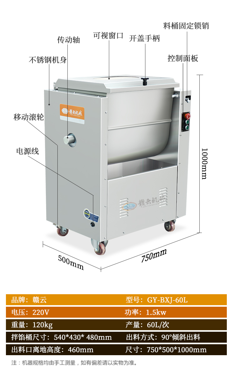 肉制品前處理->斬拌滾揉設(shè)備->60L拌餡機 | |||||||