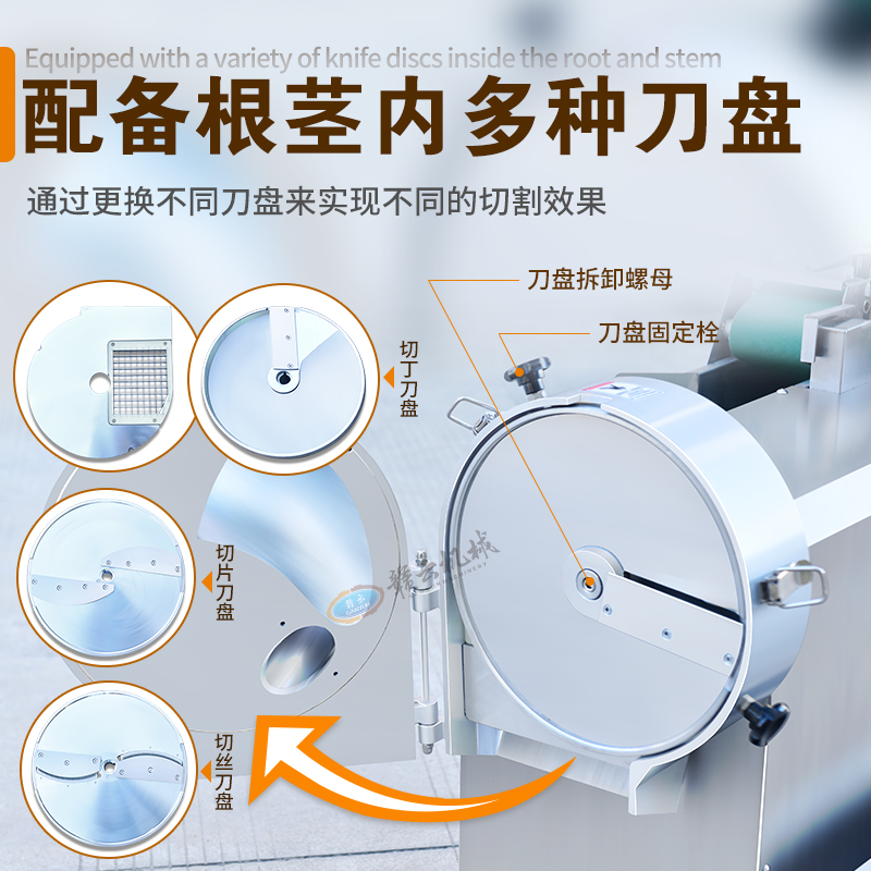 用于葉菜、球莖類(lèi)蔬菜的切段、切塊、切片、切絲、切丁的快速精準(zhǔn)切割。
