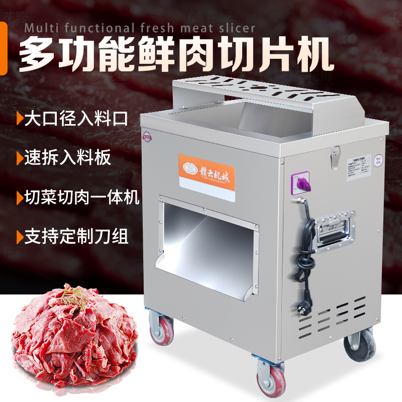 贛云工程款切肉機,可以切各種肉類,切片、切絲、切末一機搞定,也可以切軟蔬菜,例如:榨菜、魔芋、香菇、辣椒等,贛云新款切肉機配置新升級,使用優(yōu)質(zhì)大功率電機,采用不銹鋼機身,機器機身清洗方便,增加安全防護,加大了入料口,增加工作效率,新款商用切肉機一機多能,可以滿足多樣需求。