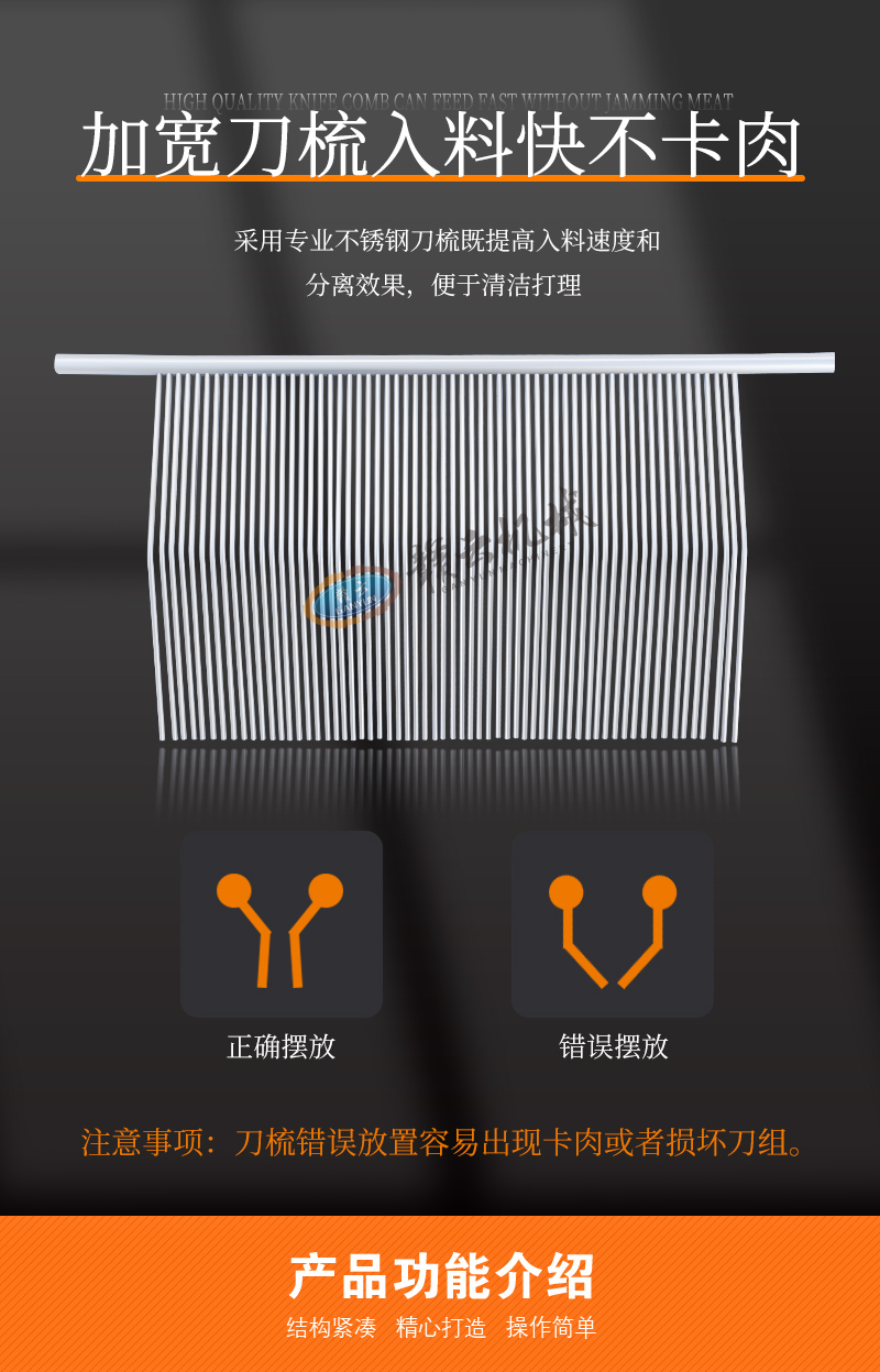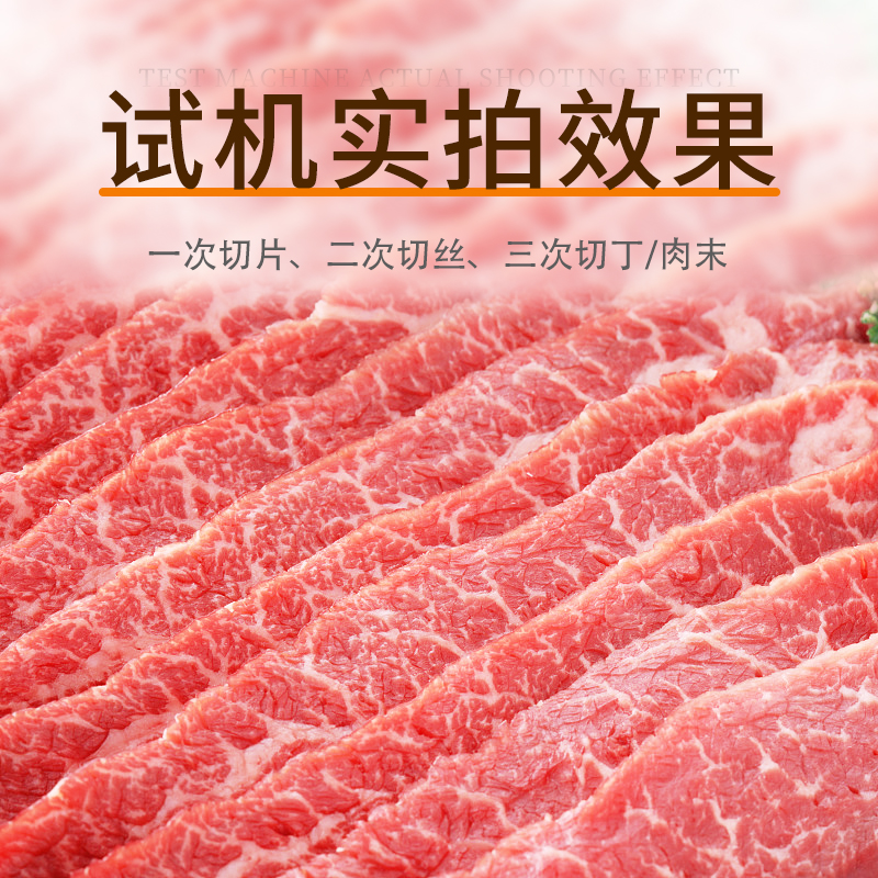 適用于鮮豬肉、牛肉、羊肉、魚肉、雞胸肉等各種肉類的切片、切絲、切末,也可以切軟蔬菜,如:榨菜、魔芋、香菇、辣椒等切片切絲切末。