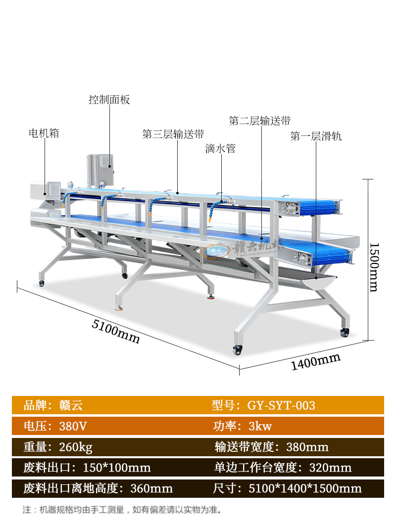 重 量: 260kg 體 積: 5100*1400*1500 mm