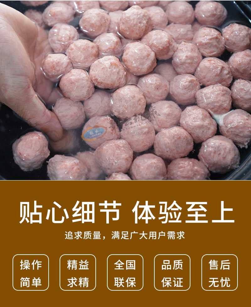 通過PLC智能控制系統(tǒng)與可調(diào)壓力螺旋裝置,快速成型魚丸、牛肉丸等多種丸子。