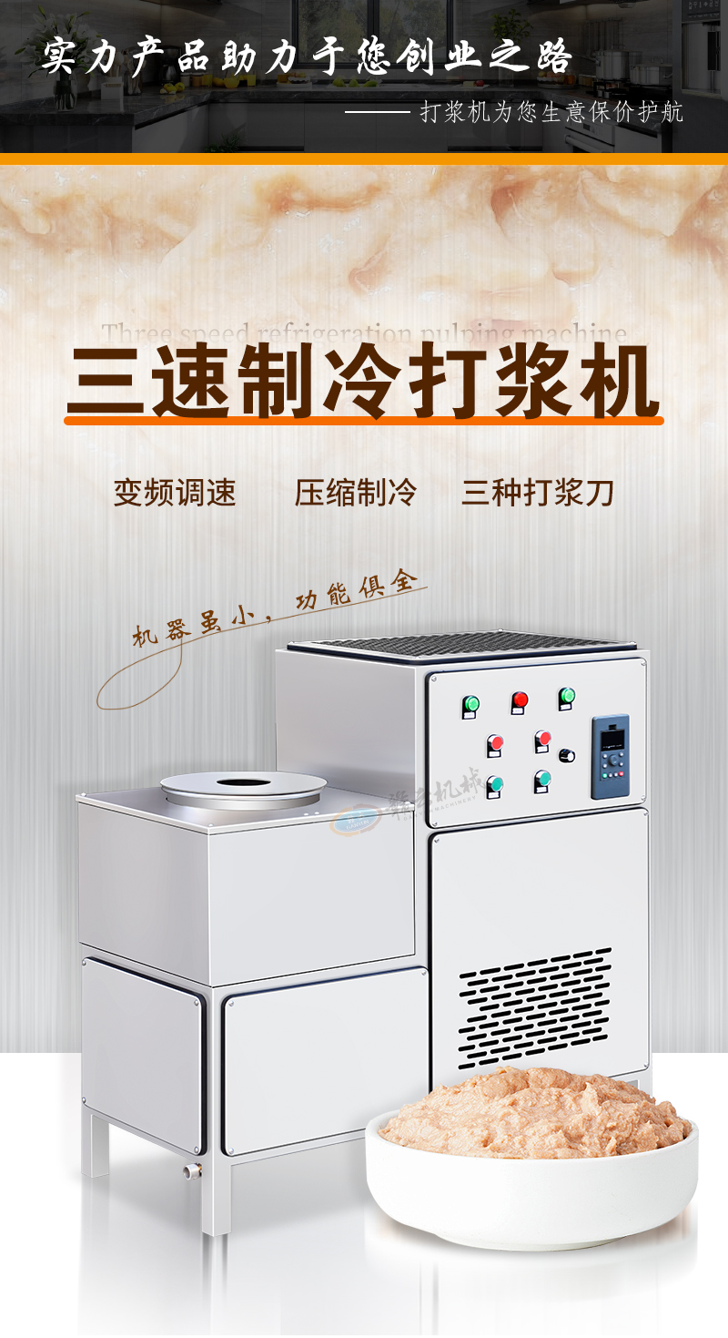 主頁-> 肉丸打漿機械->調(diào)速打漿機->三速制冷打漿機(28桶)