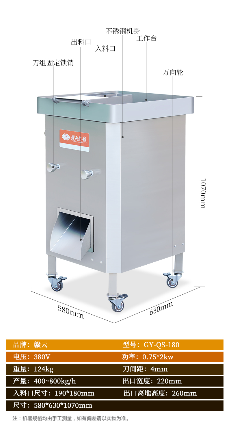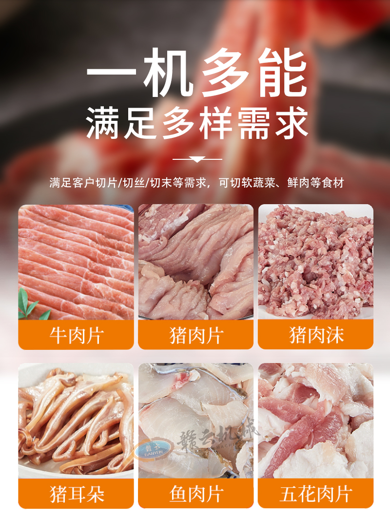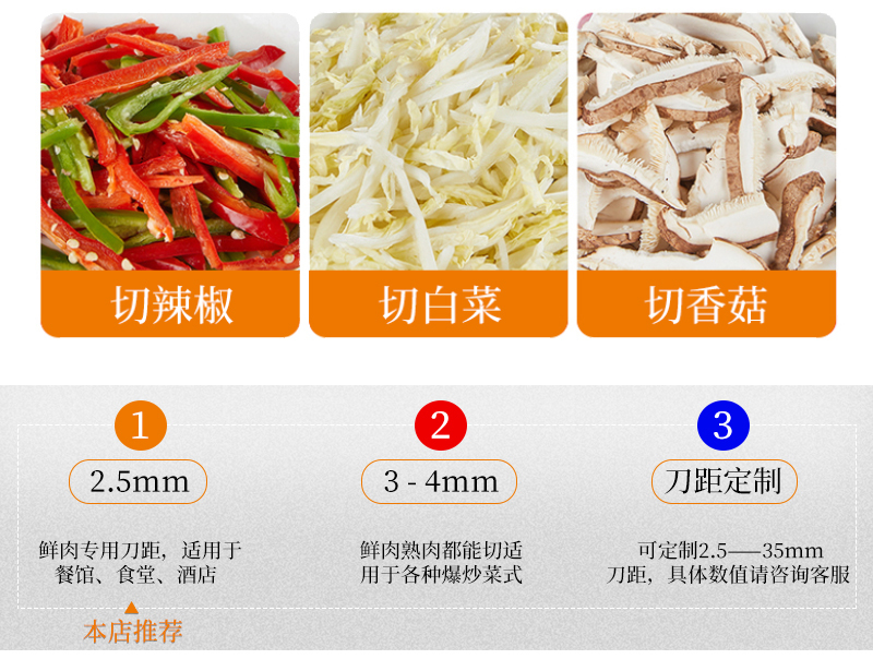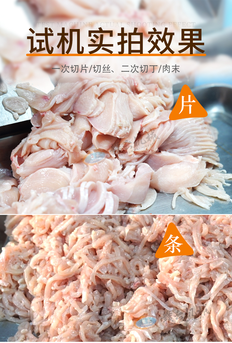 用于鮮肉的快速切割加工,高效切肉絲切丁,適用餐館、食堂、中央廚房等