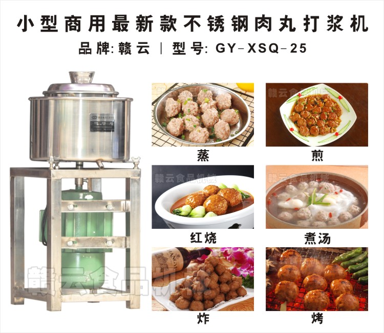 至2012年末贛云推出的最新款22全不銹鋼雙桶肉丸機(jī)以來,試產(chǎn)試營階段受到全國各地客戶青睞,曾幾度出現(xiàn)斷貨現(xiàn)象。打漿雙桶底部弧形設(shè)計(jì)是最新款不銹鋼雙桶肉丸打漿機(jī)的標(biāo)志,這種設(shè)計(jì)新穎,解決了直立式肉丸打漿機(jī)打漿不夠均勻的現(xiàn)象,打漿過程能使底部肉漿更易翻轉(zhuǎn),達(dá)到均勻調(diào)漿的目的,生產(chǎn)過程中采用全不銹鋼材質(zhì),打漿雙桶、刀片、刀套、支撐架等均是不銹鋼材質(zhì),并且使用了最新的無縫焊接技術(shù),在生產(chǎn)過程中又給支撐架加粗加厚,使這款肉丸打漿機(jī)更顯高檔,氣派,是小型商用高檔打肉漿設(shè)備。目前我們這種最新款全不銹鋼雙桶肉丸打漿機(jī)由最初的22型試產(chǎn)試營,現(xiàn)大量生產(chǎn)有三種型號:22型、25型和18型,其他型號會(huì)在后續(xù)中加工出來,敬請關(guān)注贛云機(jī)械最新產(chǎn)品發(fā)布。