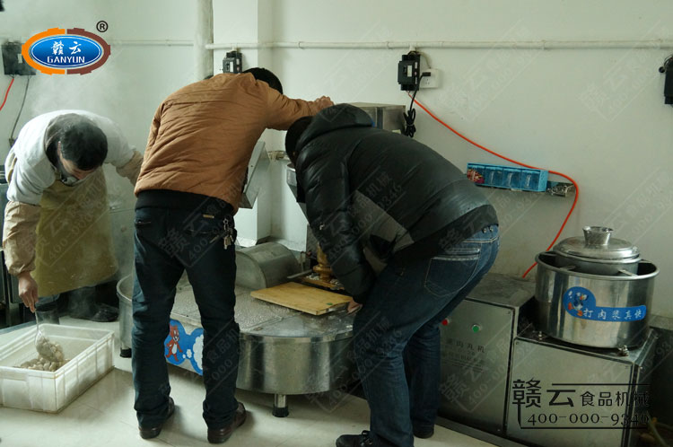 2014年2月16日,贛云接待了贛州本地寧都肉丸加工商戶。在此之前,該商戶已來過了解設(shè)備,并自提少量(約兩斤肉漿)肉漿預(yù)試機(jī)體驗,贛云工作人員告知該商戶自帶肉漿太少,看不到實際效果,建議多帶些肉漿過來。
