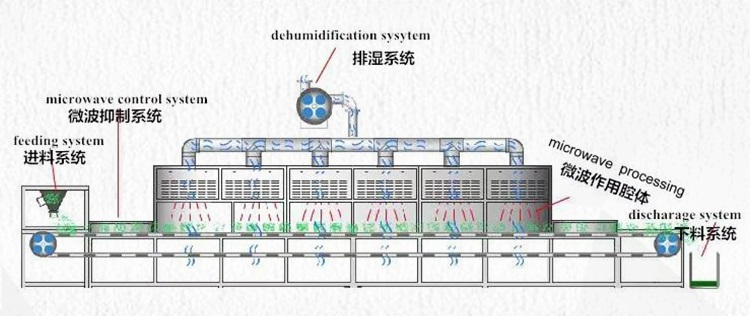 8. 安全性:贛云微波烘干設(shè)備具有多重安全保護(hù)裝置:進(jìn)出料口的微波抑制器、排濕功能、設(shè)備過熱保護(hù)、故障診斷等,以確保烘干過程的安全性。