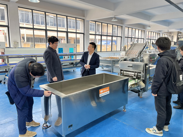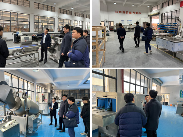 在張繼云董事長的陪同下,吳所長一行參觀了公司展廳,深入了解肉類自動化加工設(shè)備、果蔬高效處理生產(chǎn)線等核心產(chǎn)品的功能與應(yīng)用場景。重點介紹了設(shè)備在降低人力成本、提升加工效率方面的創(chuàng)新設(shè)計。