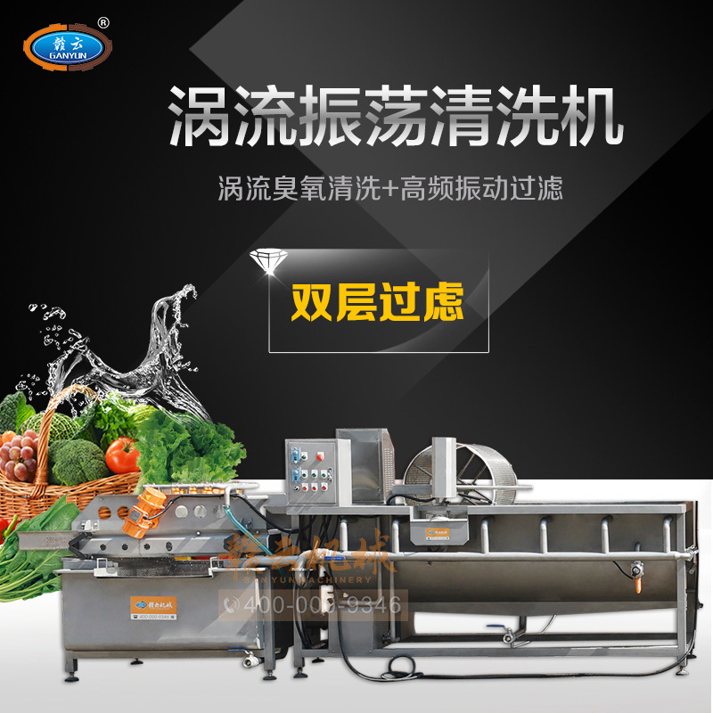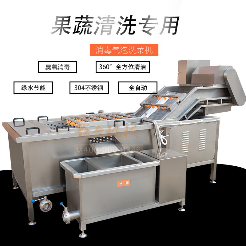 2、蔬菜清洗機(jī)自帶水循環(huán)系統(tǒng),清洗槽和低貯水箱中的水在高貯的水箱中過濾 后,再由離心泵加壓被送回水槽。耗水量較低,節(jié)水節(jié)能。所有附屬在清洗機(jī)上的裝置及構(gòu)件都可簡便安裝、拆卸和清洗。通過二至三臺的連接,可使清洗、去 異物、殺菌、冷卻等工藝連續(xù)進(jìn)行。