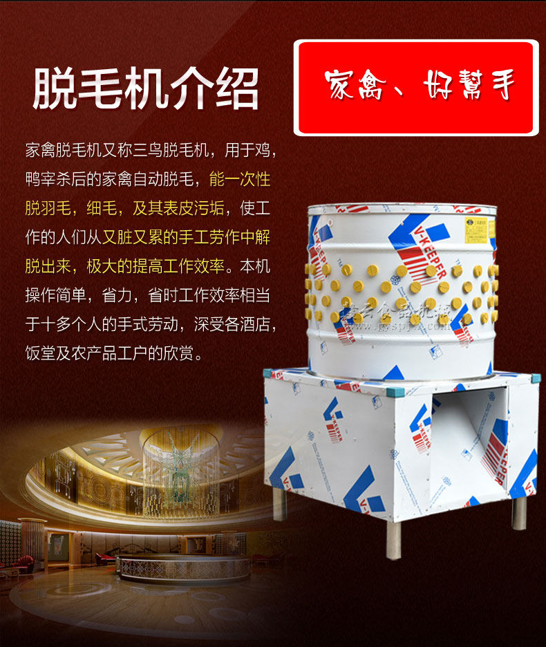 我們生產(chǎn)的這款打雞鴨毛的機器內(nèi)置的都是國標(biāo)銅芯電機,可以供您用很久很久,每一臺全自動家禽褪毛機出廠之前都是經(jīng)過了測試的,確保每一臺的實用性,加工廠雞鴨脫毛機操作簡單方便,只需要將燙好的雞鴨扔進去啟動機器即可,雞鴨鵝脫毛機器一直以來都是非常受歡迎的好設(shè)備,有需要的可隨時撥打電話。8373422對于全自動家禽褪毛機我們是全國聯(lián)保一年的,無論您是在哪個城市均可以,一直以來我們都以生產(chǎn)加工廠雞鴨脫毛機為主要目標(biāo),現(xiàn)如今雞鴨鵝脫毛機器已經(jīng)深得大眾的支持和好評了,打雞鴨毛的機器現(xiàn)已紅遍大江南北,成為食品加工業(yè)不可缺少的一款設(shè)備,更多詳情歡迎隨時來電。