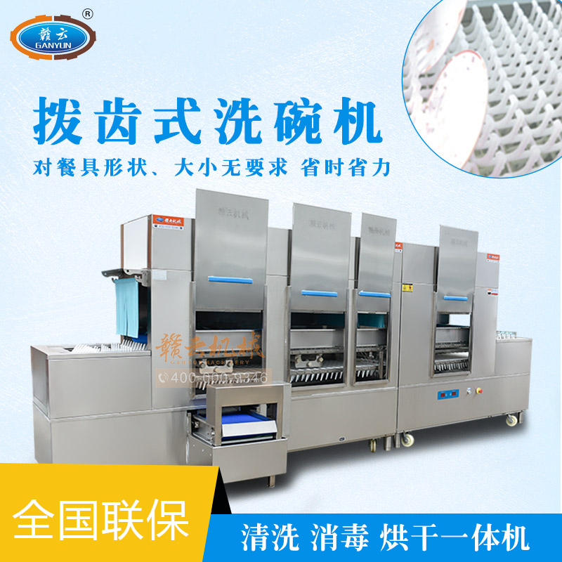 贛云新款長龍式式洗碗機(jī),本系列產(chǎn)品經(jīng)過除渣、初洗、清洗、漂洗、消毒、烘干一體化流水線操作,清洗簡單,撥齒型傳送帶,能更好的固定碗碟,洗滌過程中不易碰撞損壞,采用斜插式傳送,不需裝筐,不必考慮形狀,直接擺放清洗即可;碗碟斜插式進(jìn)入清洗,清洗無死角。
