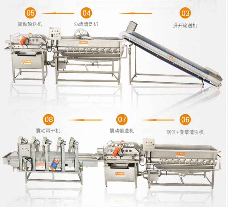渦流振動(dòng)清洗機(jī)采用螺旋狀混合水流清洗物料,高頻振動(dòng)噴洗過濾,以延長(zhǎng)清洗路徑,節(jié)約水源。二次沉淀過濾水循環(huán)系統(tǒng),高效節(jié)能。機(jī)體內(nèi)設(shè)有臭氧發(fā)生器,高效降解果蔬殘留的化肥、農(nóng)藥等有毒物質(zhì),清除化學(xué)添加劑、激素等有害物質(zhì),殺滅海鮮中容易引起中毒的嗜鹽性菌等,以保證物料的鮮度。