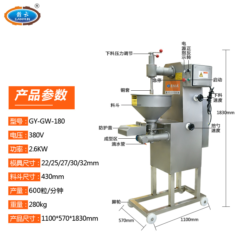 模具所產(chǎn)丸子對應(yīng)克數(shù):5/8/15/20/25克;每分鐘快達600粒。
